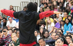 represents. Through an interactive exercise, we demonstrate the importance of respecting each person’s unique story, reminding participants that we cannot fully understand someone based on their appearance alone. This exercise highlights how the labels we place on others impact the way we treat them. The team then shares personal stories of overcoming obstacles, providing insight into how they were able to rise “up and over” their challenges. A dynamic, interactive session inviting students to reflect on how labels and assumptions shape relationships. The assembly ends with powerful performances. We use music as a bridge—its universal language helps students connect beyond differences, break down barriers, and find common ground. It takes our